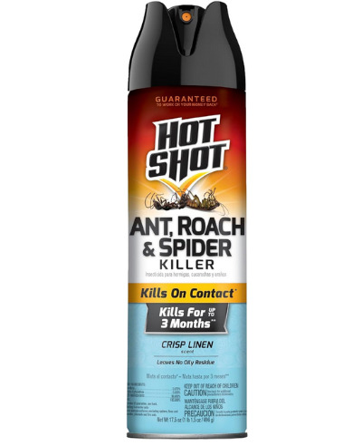 The Hot Shot Ant, Roach & Spider Killer comes in a compact 17.5-ounce aerosol can, offering portability and convenience for spot treatments. The crisp linen scent provides a more pleasant application experience compared to harsh chemical odors typical of insecticide products.