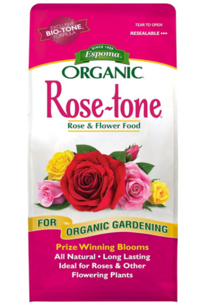 Espoma Organic Rose-Tone is an all-purpose organic fertilizer specifically blended for roses and other flowering plants. It comes in 4 lb bags, and you typically get two bags in a pack. The NPK ratio is 4-3-2, which means it has more nitrogen than phosphorus or potassium.