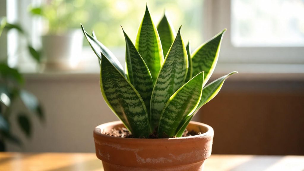 Snake plants thrive in normal household temperatures between 60-85°F. They tolerate dry air well, so you don’t need to worry about humidity.